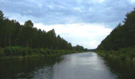 Nun dürfen wir die Oder-Spree-Wasserstraße von km 75 bis km 48 kennen lernen. Erst die "Fürstenwalder Spree" bis zur ehemaligen Schleuse "Große Tränke". Damit dort keiner mehr ertränkt, wurde sie wahrscheinlich abgerissen. Man sieht nur noch eine Schleusenwand und die Reste der Signalanlagen. Solche Schleusen sind uns die liebsten. Die Spree verabschiedet sich über ein Wehr, das nur für Paddelboote mit Gleiswagen überwindbar ist. Wir dürfen den schönen, breiten, geraden Oder-Spree-Kanal nutzen.