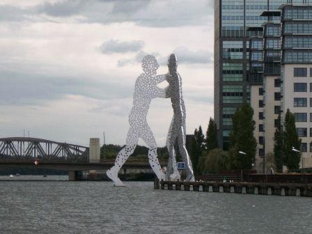 Weiter geht es an den "Molecule Man" in Treptow vorbei. Sie sind zusätzlich mit grün-weiß gestreiften Schiffahrtszeichen gekennzeichnet. Das ist wichtig, man könnte sie ja übersehen. :-)