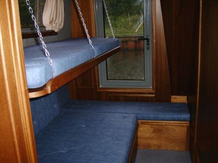 Die Inneneinrichtung ist sehr praktisch. Es gibt zwei Achterkajüten mit je 3 Kojen (eine oben, ein ausbaubares Doppelbett unten),