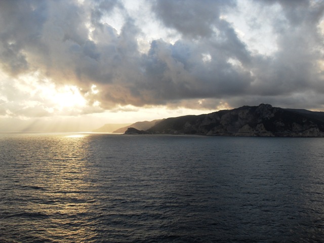 Wir beobachten die Ligurische Küste bis zum Sonnenuntergang auf Deck 11.