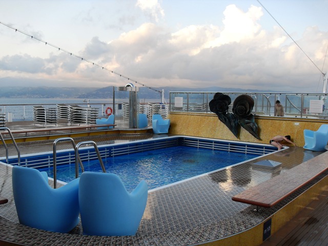 Den Außenpool werden wir während der Reise nie wieder so leer vorfinden.